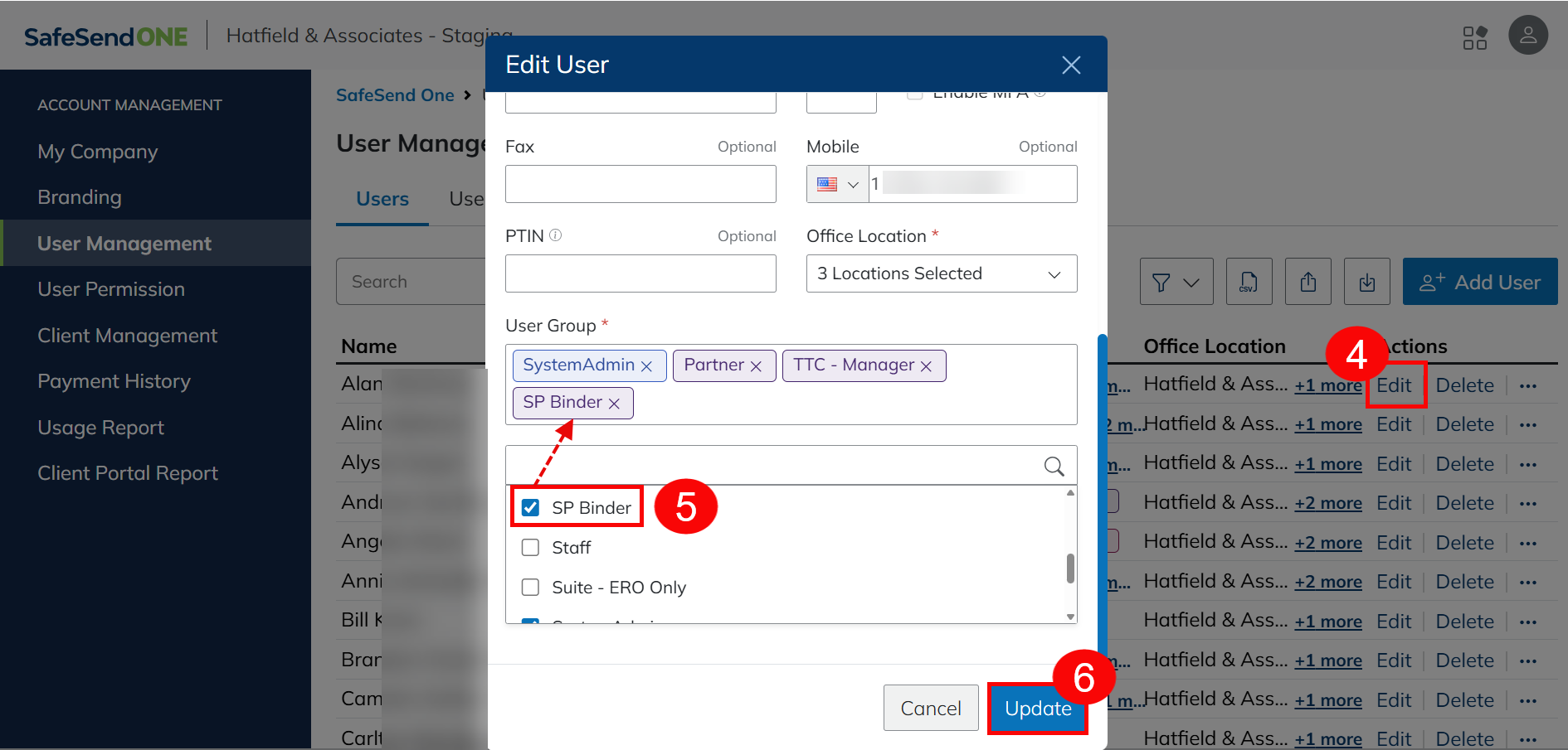 Only System Admins have access to the SafeSend Account Management and User Management sections.