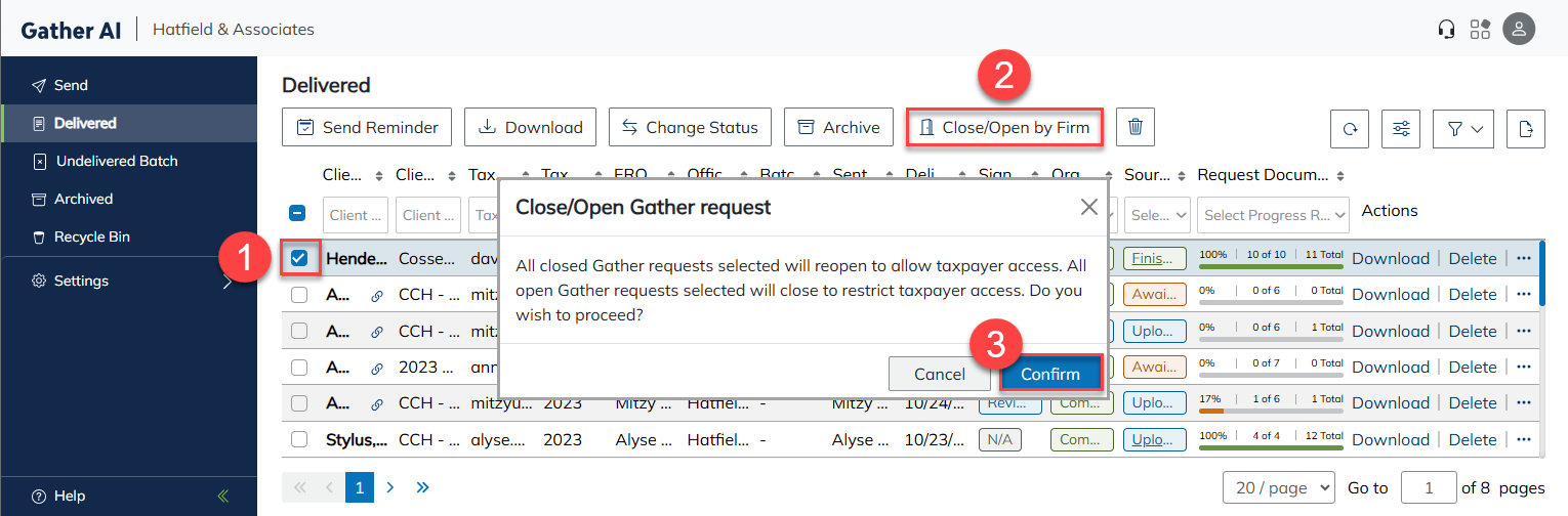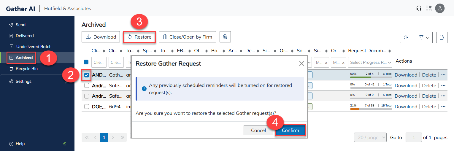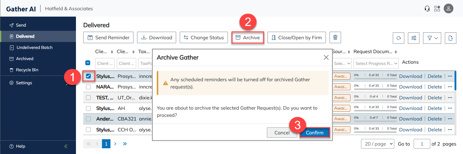 Start by archiving all prior-year Gather requests that have already been closed by the firm. This keeps completed requests organized and out of the active workflow.
