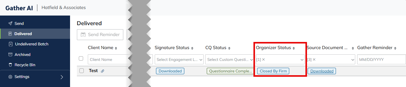- Ensure the Organizer Status column shows Closed by Firm.